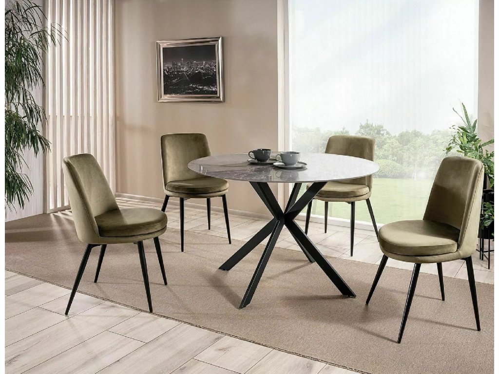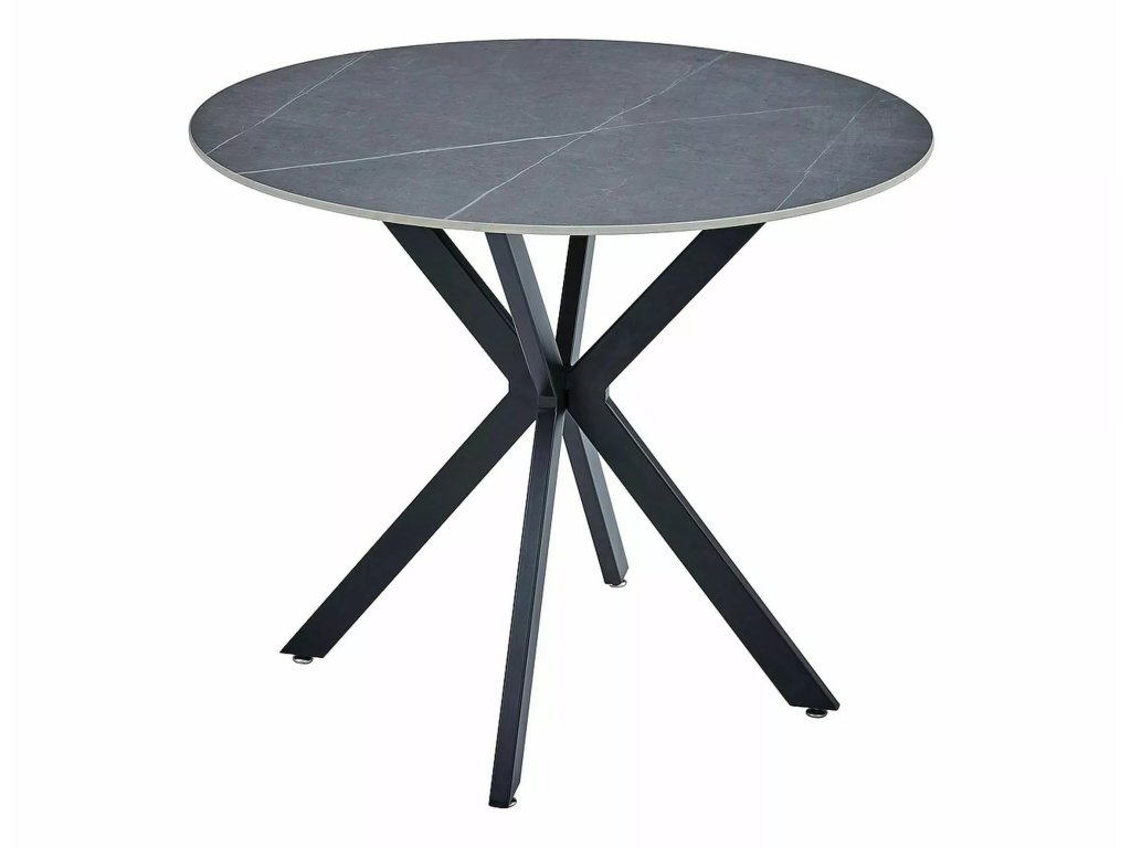 Stůl, deska: keramika, mramorový efekt, rám: kov, barvy: matná šedá / matná černá.
